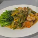 Frescos camarones salteados en mantequilla, ajo y perejil, ofreciendo un sabor exquisito y un toque mediterráneo.
