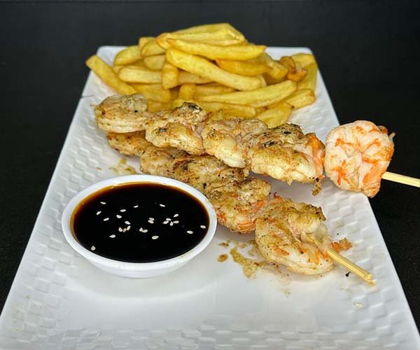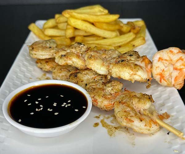 Brochetas de camarón